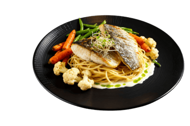 Sea Bass | Tagliolini | Roasted Vegetable | Spinach Chips
